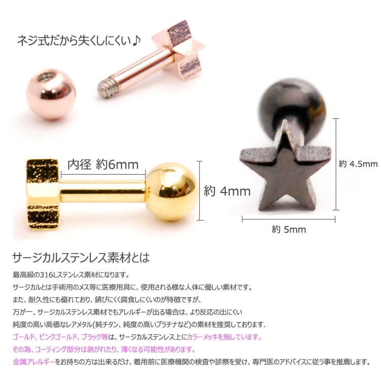 14g 16g 18g人気の定番星型(スター)ボディピアスです♪
