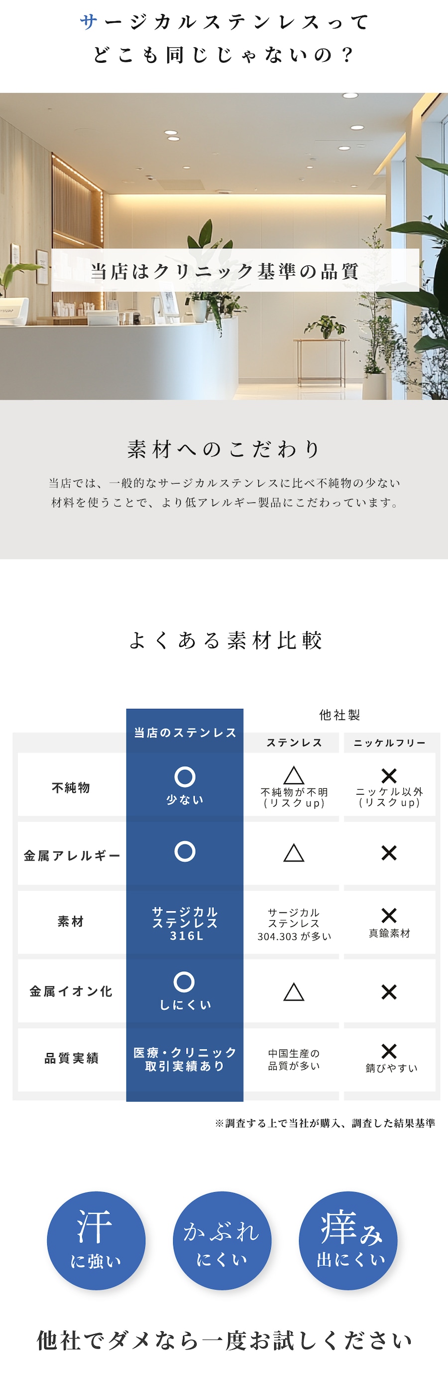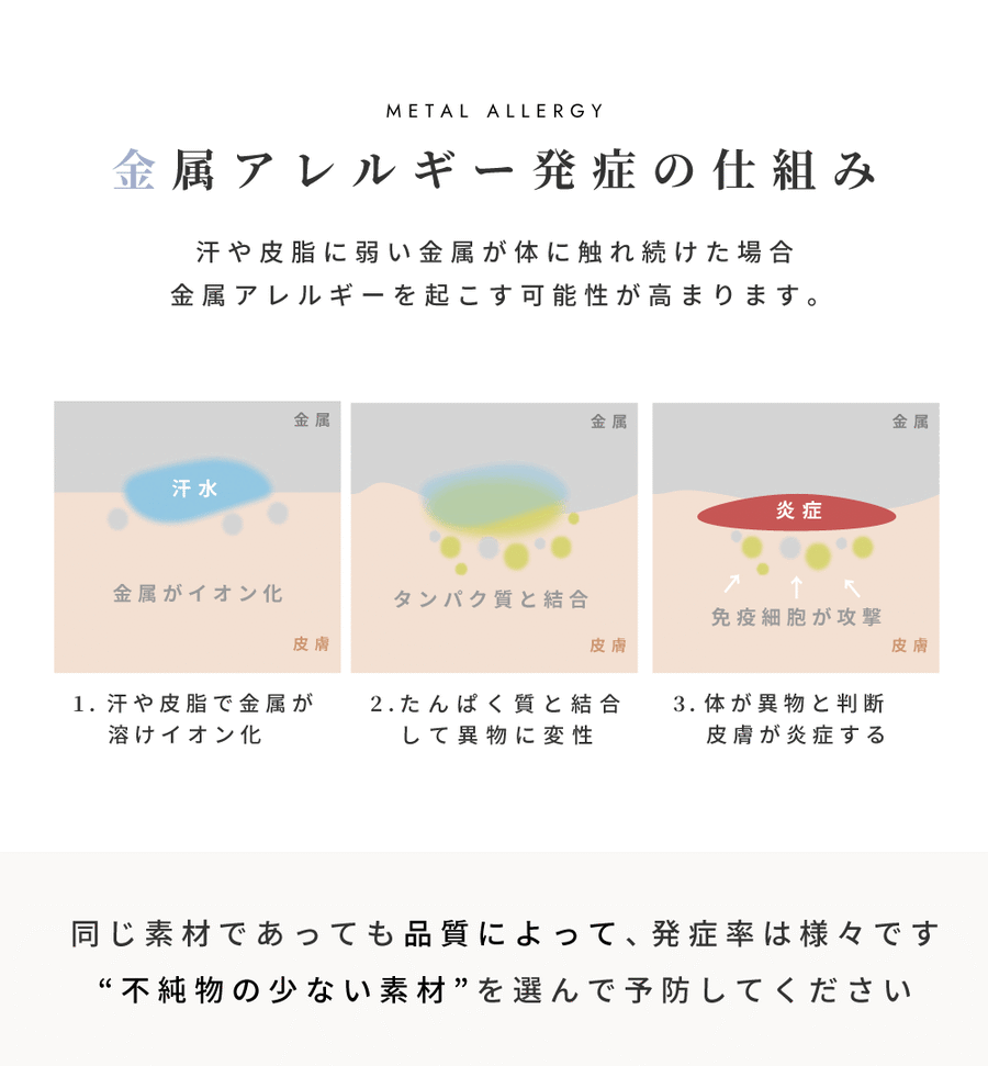 金属アレルギーには個人差がございますので、あらかじめご了承ください。